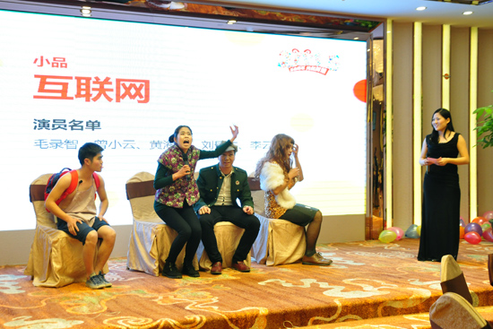 在王董一番激勵人心的講話之后,尾牙晚宴進入了表演節目的環節。今年訊網大家庭的小伙伴們實在太有才了,搞笑逗比的小品,絢麗亮瞎眼的燈光秀,還有妹紙們或可愛或動感的舞蹈。再加上兩位妙語連珠的主持人,直到晚宴結束后還有小伙伴們在回味著剛剛出現的經典臺詞,談論著節目里有趣的橋段。