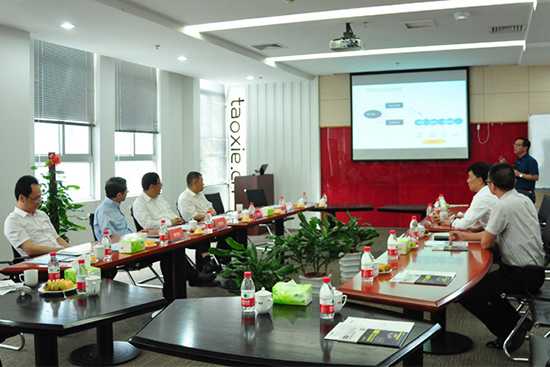 馬培華一行深入淘鞋網運營團隊辦公現場,聽取了王冬竹董事長就淘鞋網業(yè)務體系、電商人才培養(yǎng)和成果轉化的匯報,饒有興致地觀看了淘鞋網銷售訂單下達的演示系統(tǒng),并不時詢問運營難點與應用前景。在隨后舉行的座談會上,王冬竹董事長對馬培華一行到訪表示歡迎。