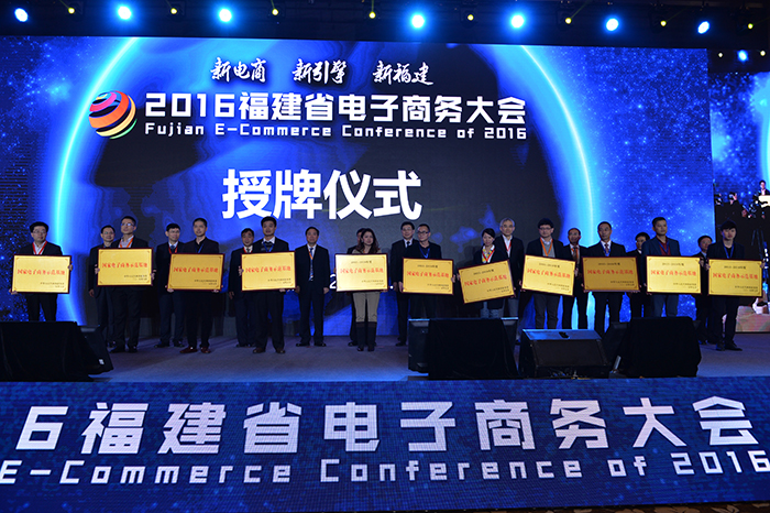 會議期間還進行了先進表彰,為第二批國家電子商務示范基地、2015—2016年度國家級電子商務示范企業、國家級電子商務進農村綜合示范縣、第一批省級電子商務示范縣(市、區)授牌;福建省訊網網絡科技有限公司作為一家國內知名的鞋產業互聯網平臺型企業,致力于為鞋產業鏈上下游各環節提供一流的互聯網技術和電子商務交易服務。截止目前,已經連續三屆入選國家電子商務示范企業了。
