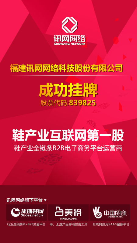 此次訊網(wǎng)網(wǎng)絡(luò)掛牌,正式成為國(guó)內(nèi)鞋產(chǎn)業(yè)互聯(lián)網(wǎng)“第一股”,彰顯了公司作為鞋行業(yè)互聯(lián)網(wǎng)資訊第一平臺(tái)、B2B在線交易領(lǐng)先平臺(tái)的行業(yè)地位。下一步,公司將利用供給側(cè)改革、制造升級(jí)、B2B電商風(fēng)口等發(fā)展機(jī)遇,以“經(jīng)緯鑄球,閉環(huán)生態(tài)”為業(yè)務(wù)架構(gòu),打通鞋行業(yè)上中下游企業(yè)及產(chǎn)品這一用戶“經(jīng)線”,建立企業(yè)專業(yè)資訊、在線交易、供應(yīng)鏈金融、數(shù)據(jù)服務(wù)這一業(yè)務(wù)“緯線”,開(kāi)放聯(lián)結(jié),構(gòu)建起連接鞋企一切互聯(lián)網(wǎng)需求的電商生態(tài)圈。