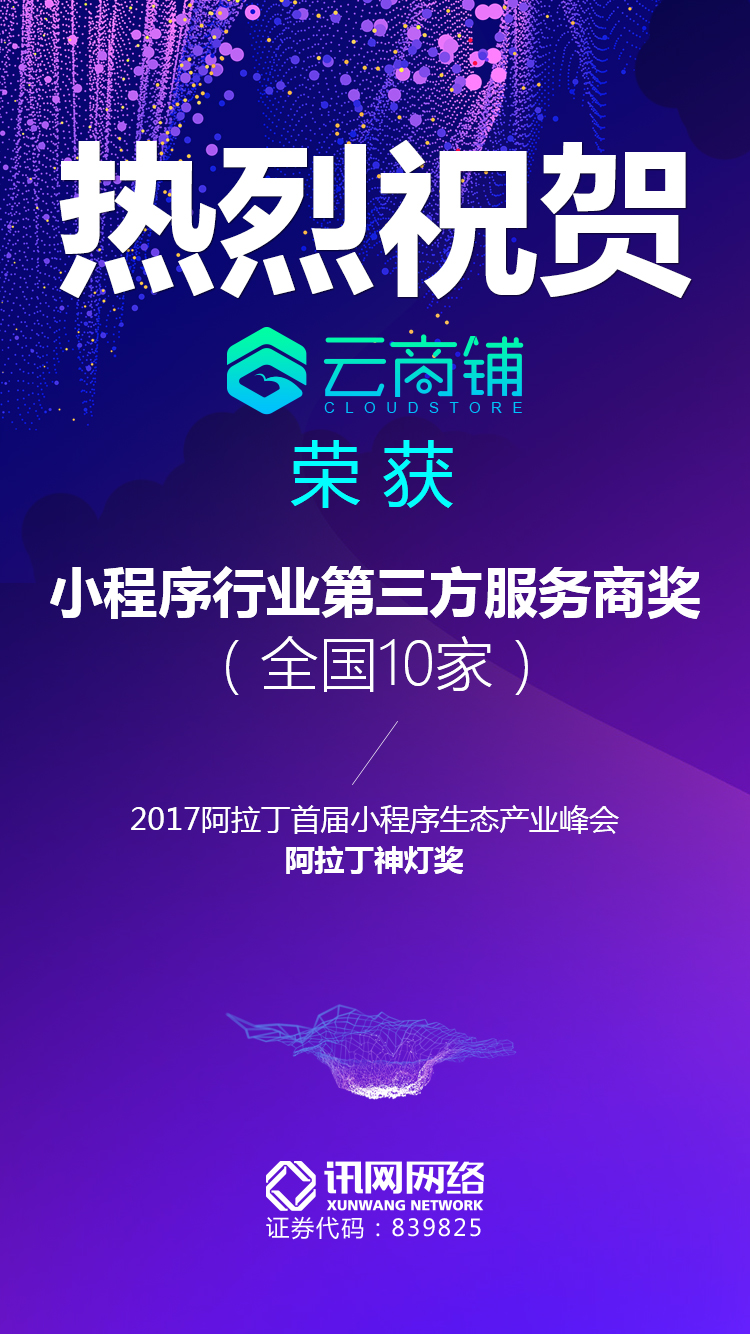小程序經(jīng)過(guò)近一年的沉淀,市場(chǎng)趨于穩(wěn)定,作為一個(gè)新物種,推動(dòng)新的商業(yè)革命,成為下一個(gè)風(fēng)口,成為鏈接生活的無(wú)限可能,成為無(wú)可阻擋的新勢(shì)力。此次峰會(huì)齊聚2000多名小程序相關(guān)行業(yè)人士,同時(shí)首份最權(quán)威的小程序行業(yè)白皮書發(fā)布,小程序行業(yè)份量最重的獎(jiǎng)項(xiàng)評(píng)選現(xiàn)場(chǎng)頒出。訊網(wǎng)網(wǎng)絡(luò)旗下的服務(wù)品牌---云商鋪榮獲“小程序行業(yè)第三方服務(wù)商獎(jiǎng)(全國(guó)10家)”。