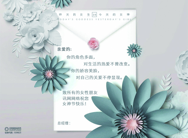今天是三八世界女神節(jié),在這樣特殊的節(jié)日里,訊網(wǎng)網(wǎng)絡(luò)為各位女神們,送上了非常有愛的女神專屬禮物。