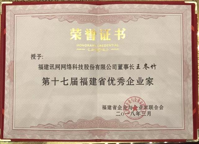 5月19日,第十七屆福建省優(yōu)秀企業(yè)家表彰大會在福州召開,福建省副省長鄭新聰?shù)阮I(lǐng)導(dǎo)出席,共有122名優(yōu)秀企業(yè)家獲此殊榮,訊網(wǎng)網(wǎng)絡(luò)董事長王冬竹榜上有名。