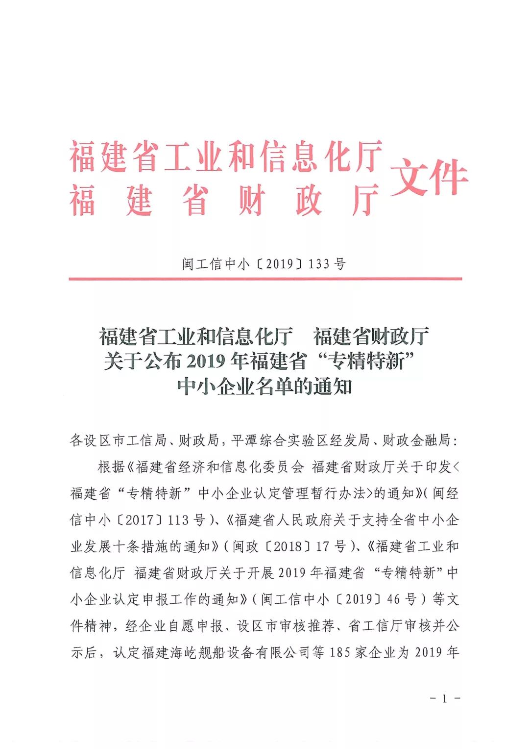 如此的戰略發展思維,與近年來新出臺的“專精特新”中小企業的遴選標準相吻合。由此,福建省工業和信息化廳近日公布了2019年福建省“專精特新”中小企業名單,共有185家優秀企業入選,訊網網絡符合“特色化”條件入選。